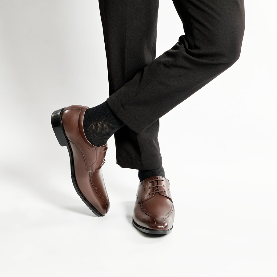 รองเท้า Derby - PCMFWLH 791 มาในทรงเพรียวบาง หรูหรา ดีไซน์เรียบง่ายแต่ไม่ธรรมดา จุดเด่นคือการตกแต่งลาย Brogue ที่พุ่งตรงไปยังหัวรองเท้า เพิ่มความเท่และบุคลิกสำหรับสุภาพบุรุษออฟฟิศ ผลิตจากหนังวัวนำเข้า ให้สัมผัสนุ่ม ทนทานต่อการใช้งานระยะยาว และใช้เทคนิค Patina ที่ไล่เฉดสีอย่างกลมกลืน สร้างความประทับใจและโดดเด่นยิ่งขึ้น